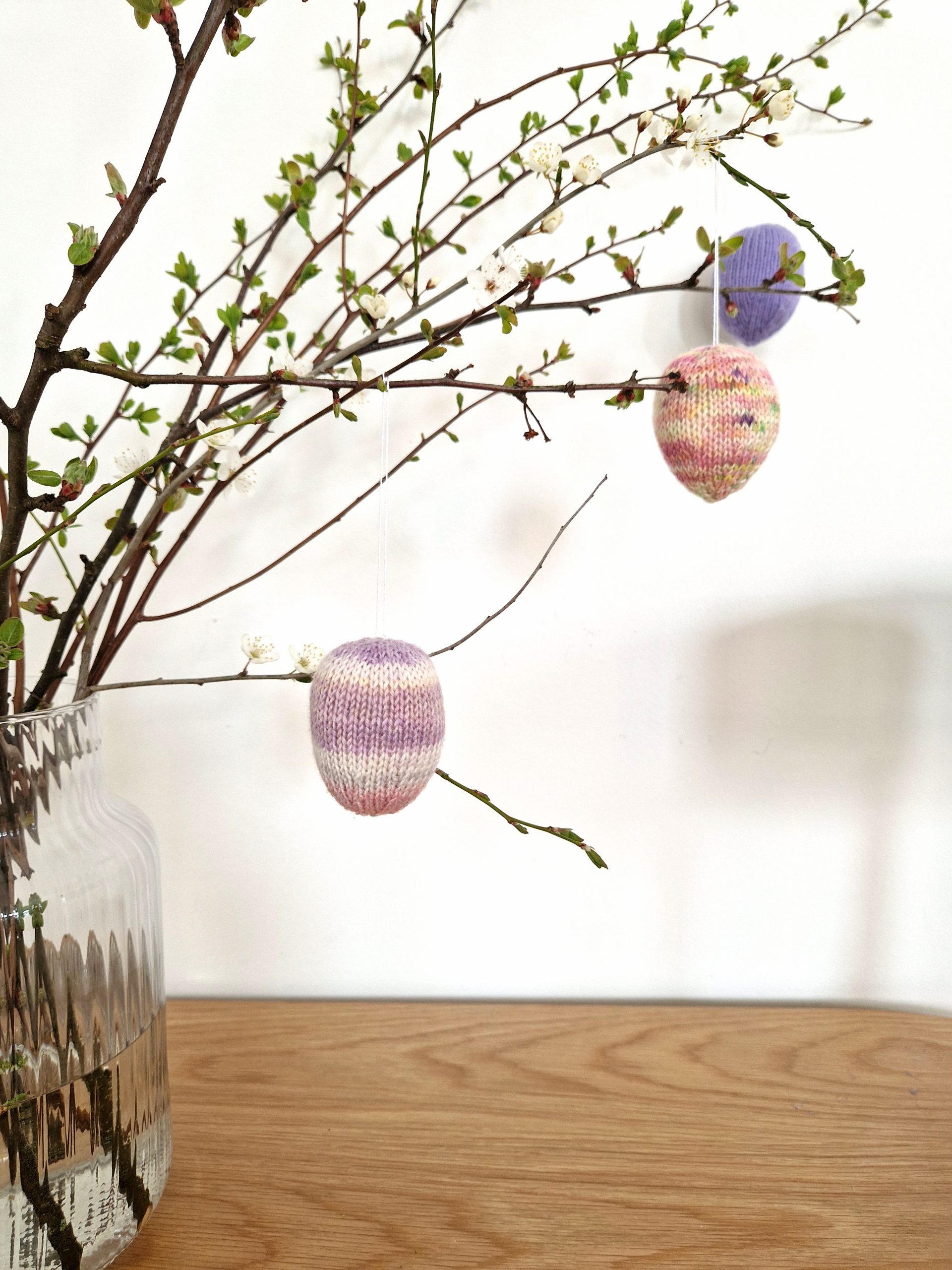 Gestrickte Ostereier sind eines dieser Projekte, bei denen der Aufwand und das Ergebnis in einem wirklich guten Verhältnis zueinander stehen. Kleine Wollreste werden zu etwas, das man tatsächlich benutzt, jedes Ei sieht durch das Garn ein bisschen anders aus, und wenn man erst mal drin ist, strickt man automatisch noch ein zweites und drittes. Das Nadelspiel, die Zunahmen, die Abnahmen – all das ist eine schöne Übung, die sich auch für andere Projekte bezahlt macht.